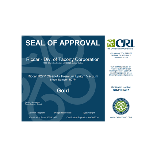 Riccar R27P Premium Pet Clean Air Upright Vacuum